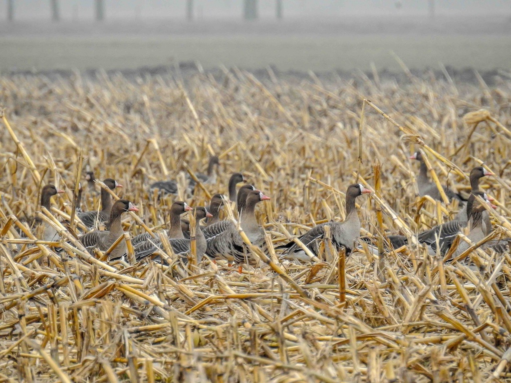Bläßgans: arktischer Brutvogel - Wintergast - am Schnabelansatz weiße Blässe