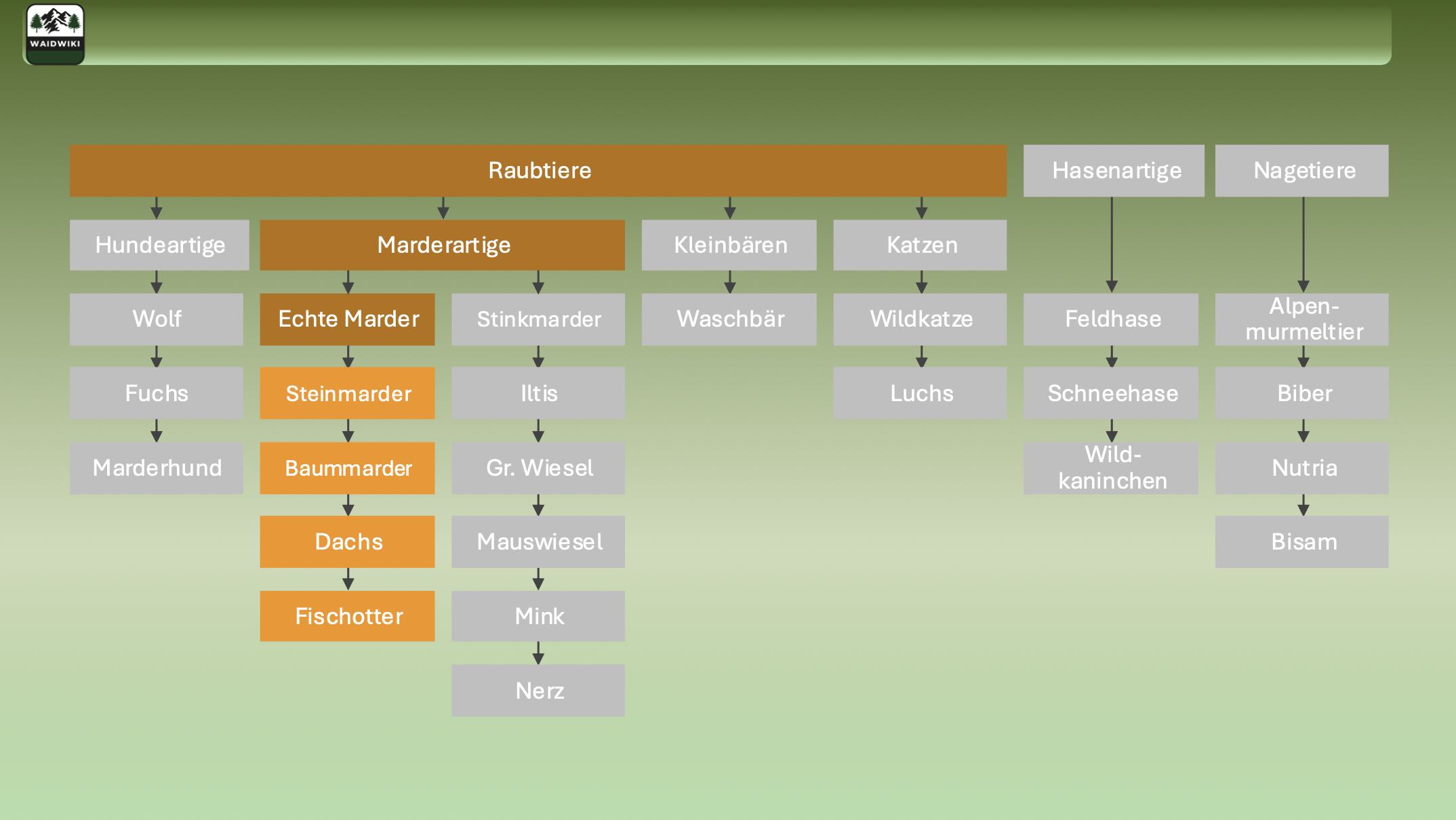 • Weitere Bezeichnungen wie beim Fuchs und Marder.