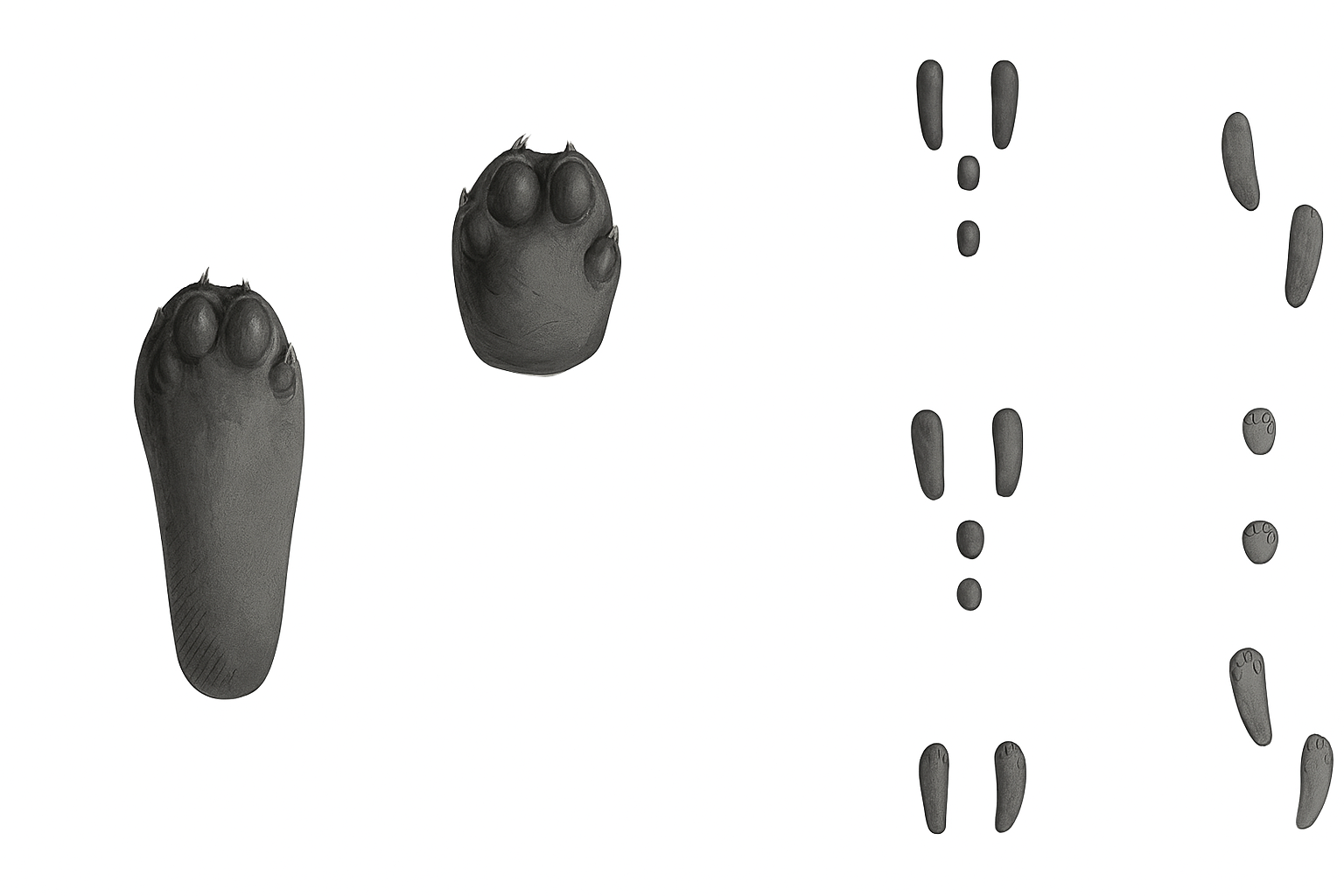 Die Hasenspur ist leicht an ihrer Spurstellung zu erkennen. Sie besteht aus zwei kleineren, hintereinander gesetzten Trittsiegeln der Vorderläufe und den beiden durch Übereilen nebeneinander davor abgedrückten längeren Tritten der Hinterläufe