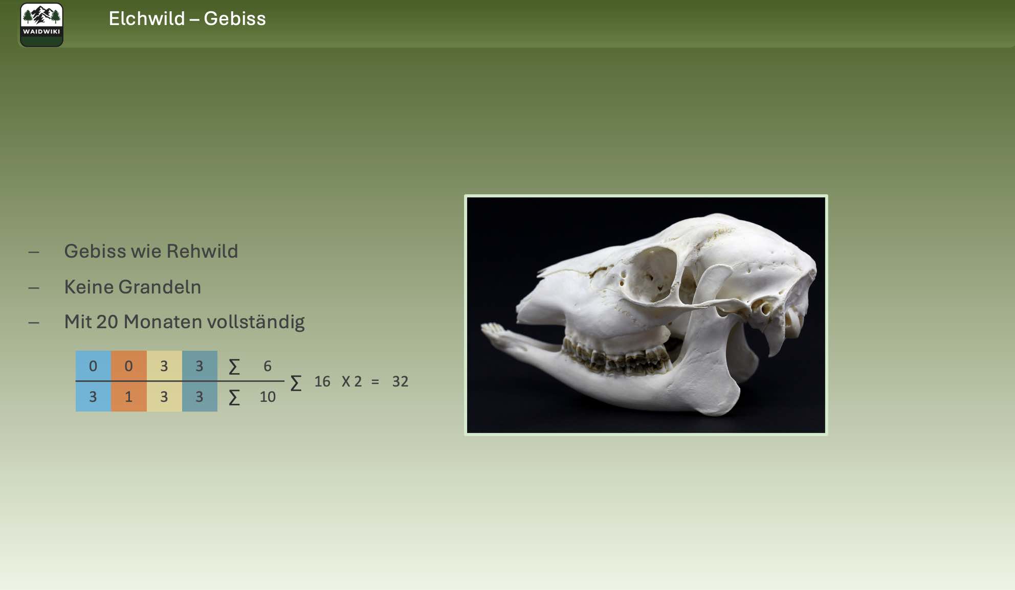 Elche haben keine Grandeln. Der Zahnwechsel ist mit 18-20 Monaten abgeschlossen.