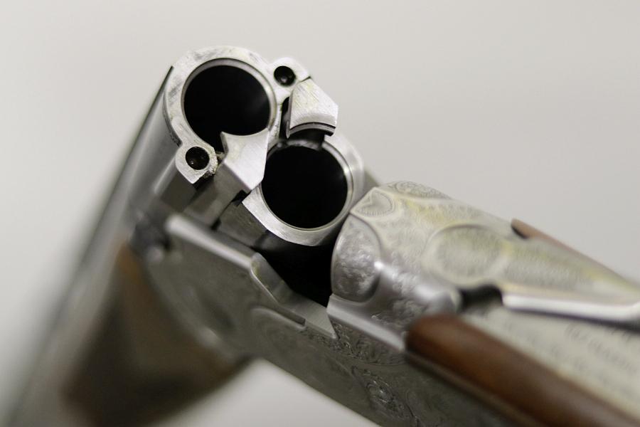 Der Flankenverschluss wird bei Kipplaufwaffen verwendet, er hat seitliche Verriegelungsbolzen, die den Verschluss sichern.